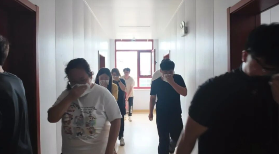 下午3时,演练正式开始,实习生宿舍楼内模拟烟雾弥漫,各应急救援小组迅速到位,全体实习生按照预定逃生路线有序撤离。全体人员手捂口鼻,低姿前行,仅用5分钟便全部撤离至安全区域。随后,现场讲解灭火器、消火栓的使用注意事项和正确使用方法,并指导实习生进行了实操演练,确保人人掌握消防器材的使用技巧。