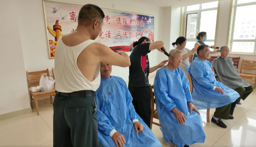 医院联合青州市王府街道范公亭社区开展“爱心义剪”活动。志愿者携专业理发工具走进病房,一边精心修剪,一边倾听老兵讲述峥嵘岁月,“大爷,您看这发型还满意不?”理发后的老兵们精神焕发,更显神采奕奕。
