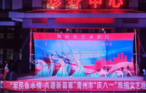 7月30日晚,医院联合青州市委宣传部等开展“军民鱼水情 共谱新篇章”双拥文艺晚会。器乐《信马行》、京剧《中国脊梁》、歌曲《强军战歌》……志愿者们为优抚对象献上一台精心准备的文艺演出。