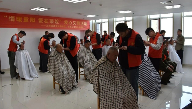 10月27日,医院病房里多了几分“烟火气”—— 范公亭社区志愿服务队与美发协会的志愿者们,将 “流动理发室” 搬进病房,为60余名荣军和托养老人免费理发。志愿者们一边细致修剪发型,一边与老人们拉家常,“您看这个长度合适不?”“剪完头发,整个人都精神多啦!”贴心的服务让老人们笑容满面,不仅“焕新”了形象,更暖了心头。