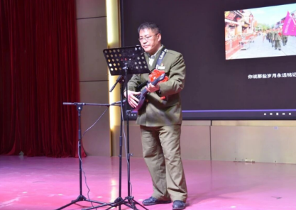 当《中国红》的旋律响起,台上演员舞姿飒爽,台下荣军自发挥舞手中的小红旗,鲜艳的红色在会场中涌动,汇成一片炽热的“爱国海洋”。87岁高龄的老兵被现场温情感染,即兴登台演奏口琴独奏《月亮代表我的心》,每一个音符都直击人心,全场掌声经久不息。联欢会在《我是一个兵》《打靶归来》的集体合唱中落下帷幕,嘹亮的歌声回荡会场,尽显荣军本色与军民同心。