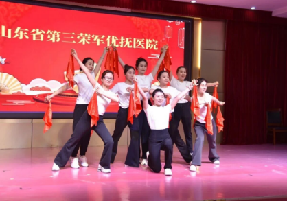 开场舞《欢聚一堂》节奏明快、舞姿昂扬,瞬间点燃全场热情;荣军代表丁庆华同志的真挚致辞,与原创诗歌朗诵《写给荣军的诗》遥相呼应,生动诠释了“荣军被尊崇、服务显担当”的双向奔赴与深情共鸣。舞鼓韵《象王行》以深沉有力的鼓点,传递出荣军们永葆本色的精神力量与红色基因的代代传承;原创快板《荣光沐晚晴 照护化春风》则以接地气的形式,将医院优抚工作的初心使命、细致服务与扎实成效娓娓道来,赢得阵阵喝彩。