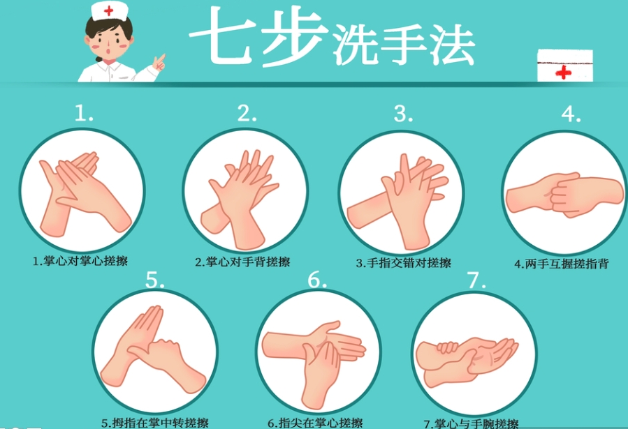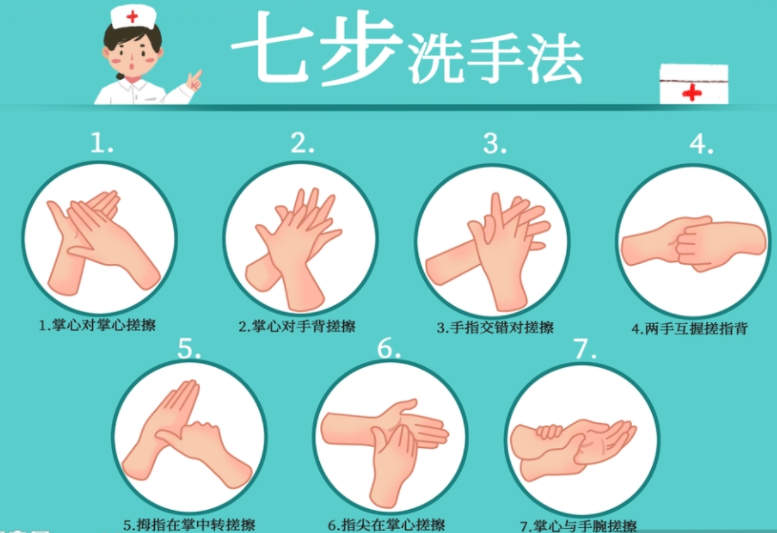 1.坚持“七步洗手法”,用流动水搭配肥皂或洗手液彻底清洗双手,搓洗时间不少于15秒,外出归来、饭前便后、接触公共物品后必洗,避免用脏手接触口、鼻、眼。